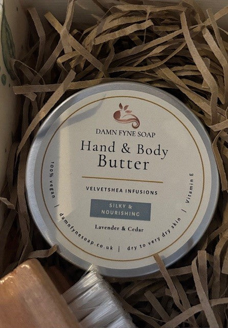 Complete Care: Includes Lavender & Cedarwood Hand and Body Butter and a Nail Brush for all-around pampering.